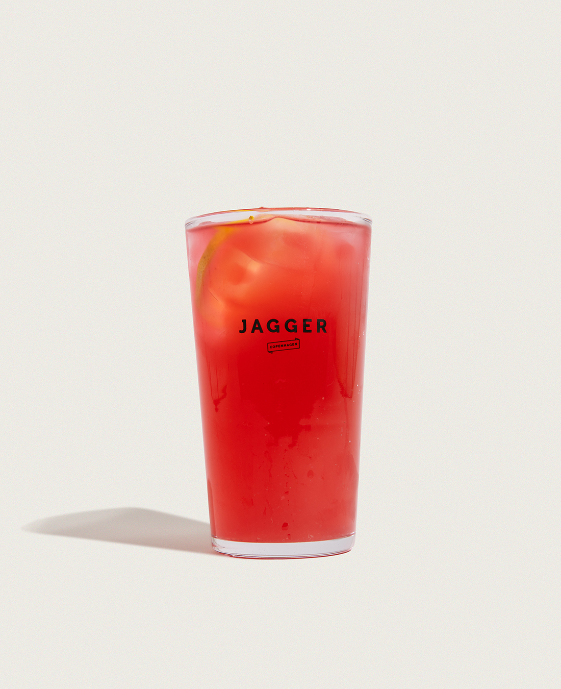 Vores økologiske, hjemmelavede lemonade med hindbær, solbær og citron.