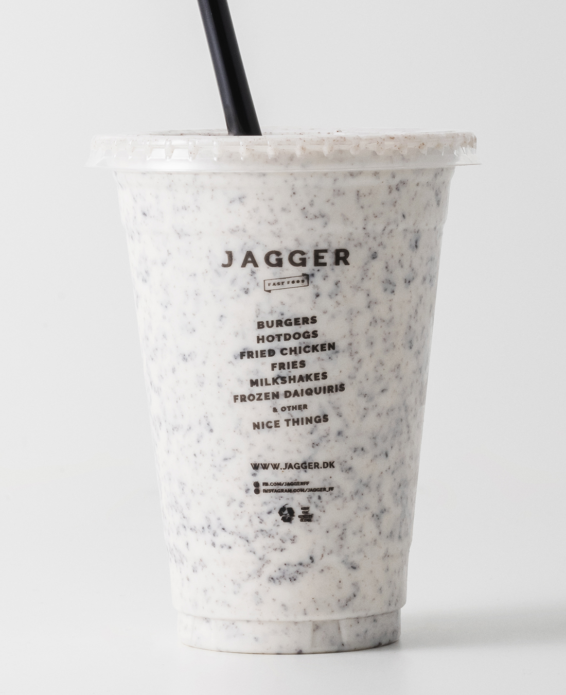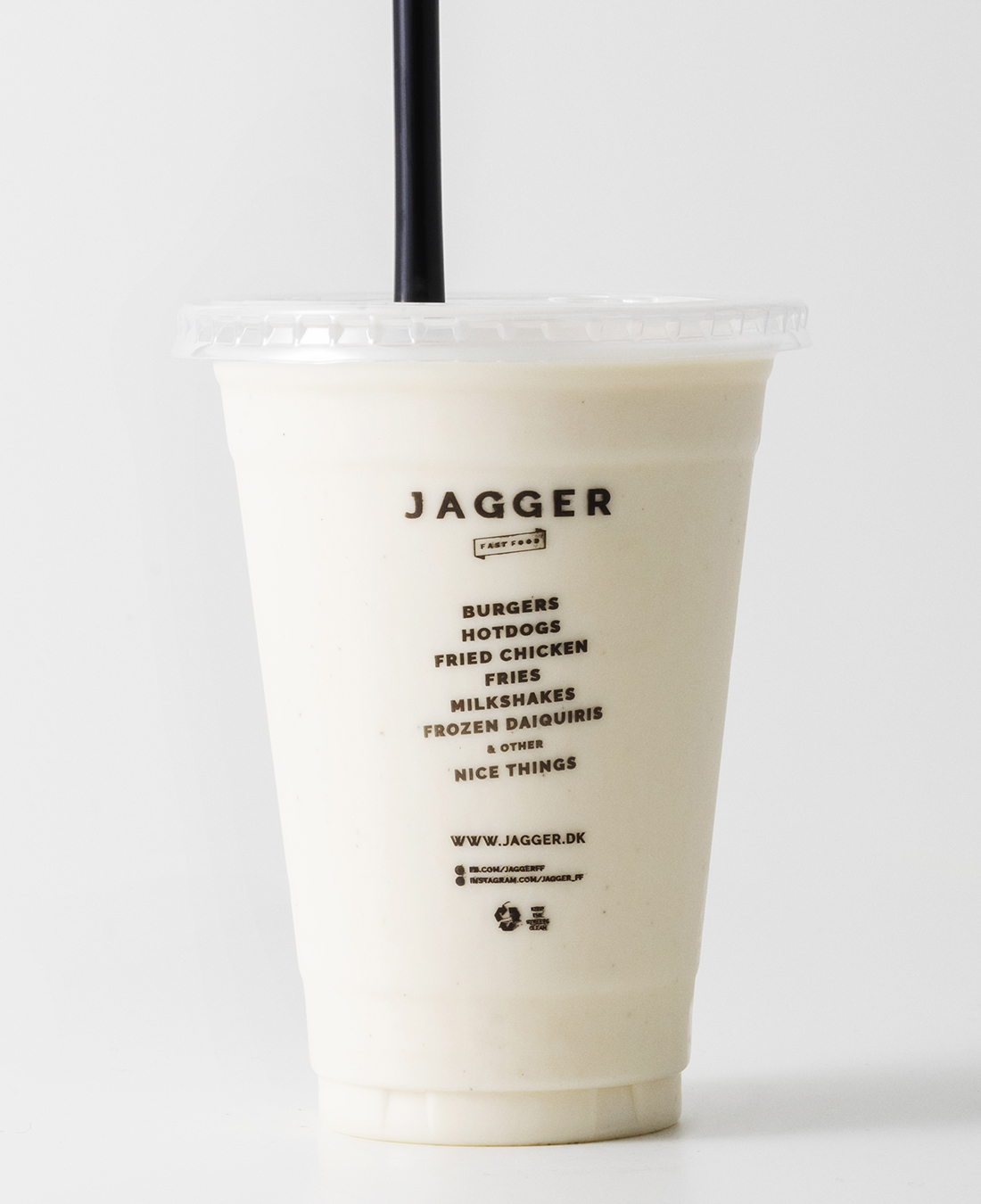 Økologisk burgerbolle, økologisk veggiebøf (gluten), mushroom garum, tomat, salat, rødløg, pickles & vegansk Jagger sauce.
